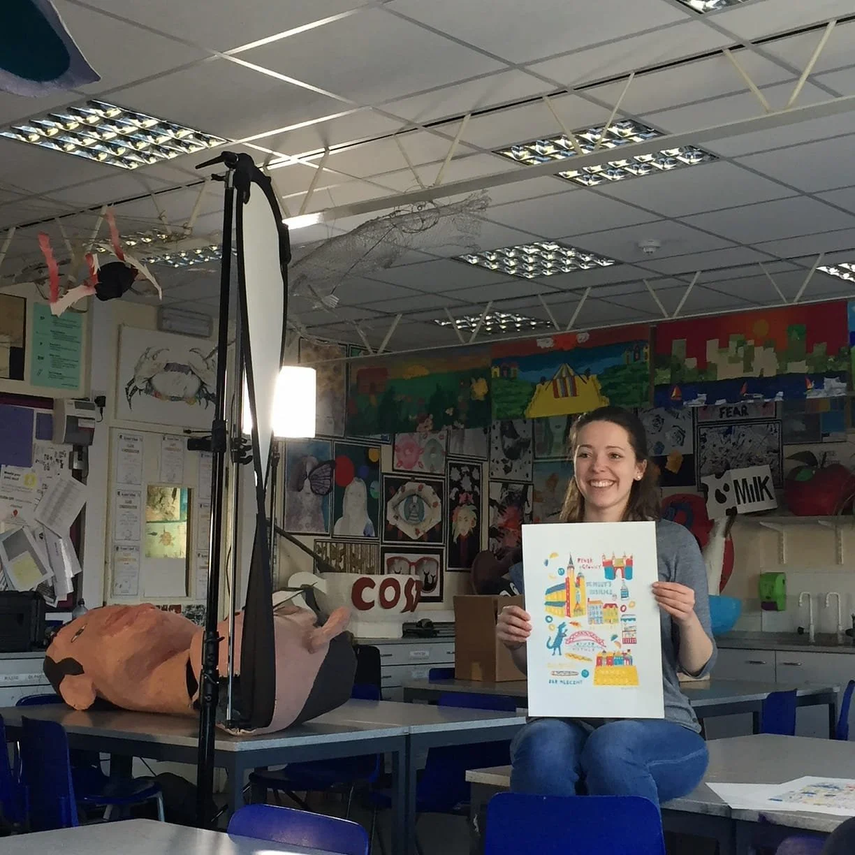 I have worked in educational and non fiction publishing, illustrated a picture book, licensed work to clients around the world and even screen printed a calendar for a huge Italian energy company. In 2015 I travelled to India to work with the fantastic charity Katha at their annual Utsav, leading workshops with the children there. In winter 2017-18 I was selected as one of the faces of Not On The High Street’s ‘Thoughtfully Made Sale’ campaign.